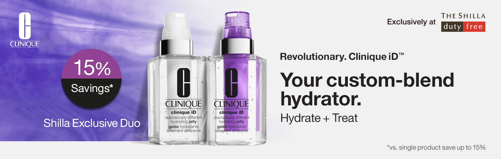 Clinique’s first-of-its-kind customizable moisturizer can re-plump and brighten your skin! The Shilla Exclusive combo set, Clinique iD for Lines and Wrinkles & Clinique iD for Uneven Skin Tone, treats your skin concern with 15% savings per singles. Get this Shilla Exclusive at Beauty&You before onboard!