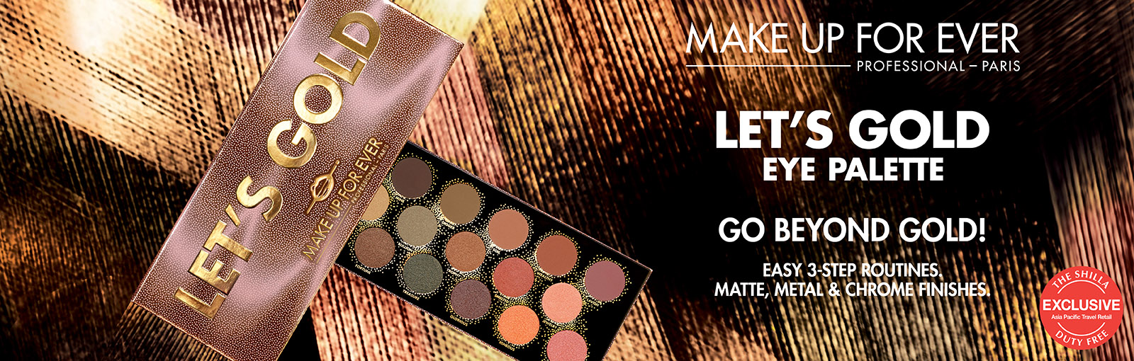 Be inspired by all of gold’s forms and hues with the MAKE UP FOR EVER Let’s Gold Palette! Featuring 6 harmonies from white gold to rose gold, create limitless eye makeup looks with 18 wearable shades in 3 luxurious finishes. GO BEYOND GOLD and unveil your creativity!
