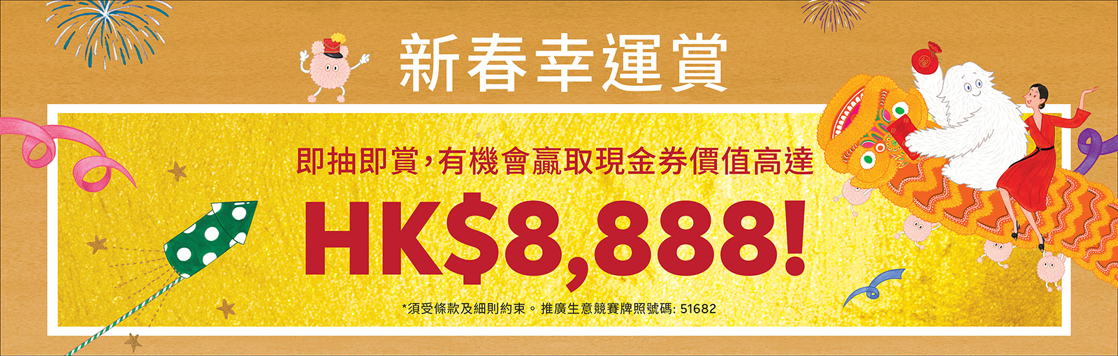 凡到 Beauty&You 購物淨值滿HK$1,000,即可獲抽獎機會一次,有機會羸取高達HK$8,888現金券。