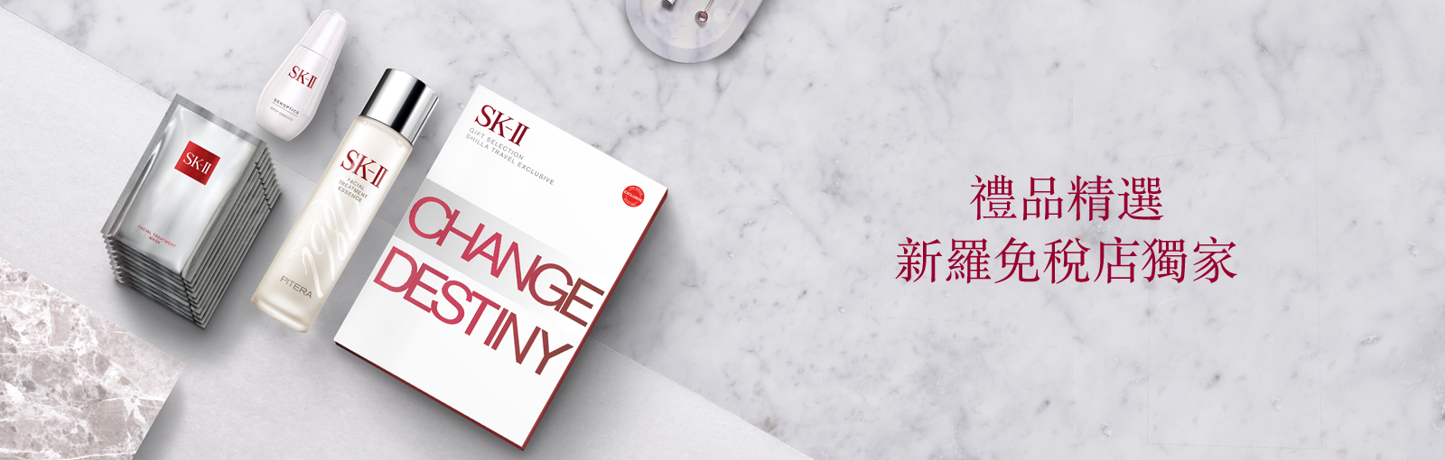 新羅免稅店獨家。包含SK-II的經典神仙水™與肌源淨斑精華。有助肌膚晶瑩剔透並淡化色斑的至佳選擇。